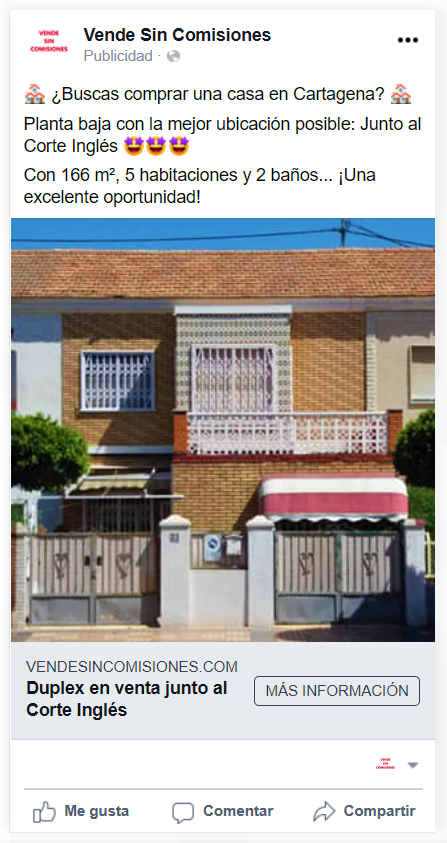 Ejemplo de anuncio en Facebook para vender tu vivienda
